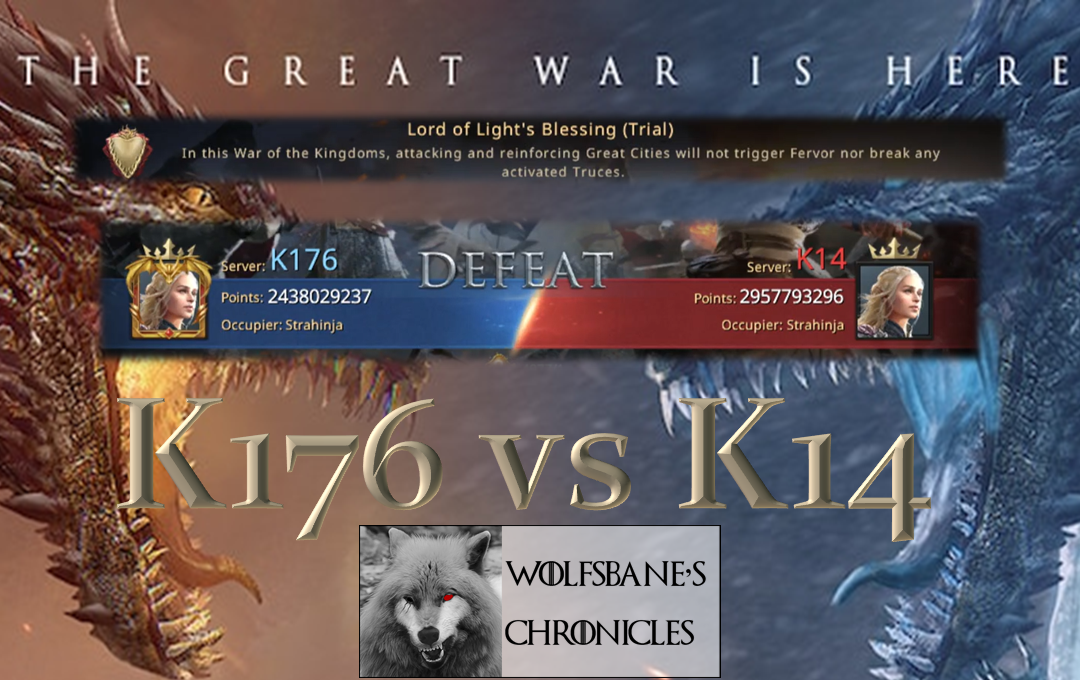 It is War of the Kingdoms! That special event that pairs Kingdom vs Kingdom for 24 hours, and where the rewards are blue diamonds. This was a special KvK, where you could rally and attack Great Castles without breaking your truce. This proved extremely exciting as we could rally without fear of being zeroed when our truces broke, and it is just as well because K176 were outpowered by the TheNightWalkers[NW1] in K14.