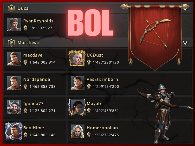 Macdave for BoL: He individually faced various enemies once they had set up camp outside their walls and managed to score many points in this way.