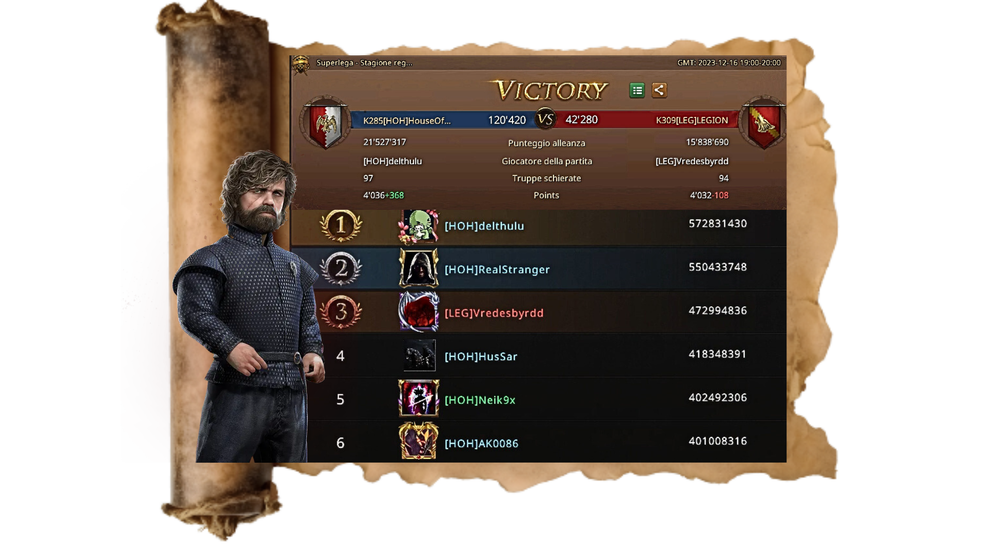 - Delthulu per HOH: Earned this recognition for the cunning displayed on the battlefield during attacks on enemy bases, where he proved to be one of the most formidable opponents to face.