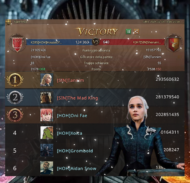 Among the contenders was the House of Heroes, which, however, stumbled at the start of its adventure in the twelfth season. The battle was far from easy for them as they faced off against a formidable opponent like N3O, who, despite coming from a disappointing season in Alliance Conquest, showed why they had ranked first in the previous season of SoW. The match was brutal, with HOH fighting until the brink of exhaustion, until the third loot available, which, when conquered by N3O, put an end to the hostilities, declaring them the victors.