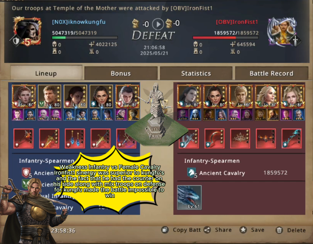 It was [OBV], an alliance stronger in both alliance power and alliance score compared with [N0X] and also a new enemy as [N0X] never faced them in Alliance Conquest. That didn't discourage anyone in [N0X] as everyone was expecting a very strong opponent, so the [N0X] council stood down at the table and started gathering information's about [OBV]'s strongest warriors, what troops they main and also make a strategy on how they can be defeated. It was already evening when the strategy finally got completed and it was announced to every warrior in alliance to prepare accordingly and once that was done, everyone gathered together and headed to the battlefield. They arrived there just in time as the battlefield doors opened, and everyone started entering and placing their camps on exactly the positions assigned by the council. The terrific duo, Shado and LadyKnight, had different assignments for the fight, Shado was chosen as racer (no idea why, he never won a race in 3 seasons) while LadyKnight was assigned to rally troops in battle and lead them towards victory(hopefully). The attendance was great for both alliances, 90 warriors for [N0X] vs 96 warriors for [OBV], it was looking likes it's going to be a great fight. The fight started with the opening of 4 buildings, Targaryen and Lannister Outposts, Temple of the mother and Tower of the Warrior, Shado was assigned on racers 2 team, to race for the Tower of the Warrior, the most important initial building as it provides various very good buffs in combination with other buildings.