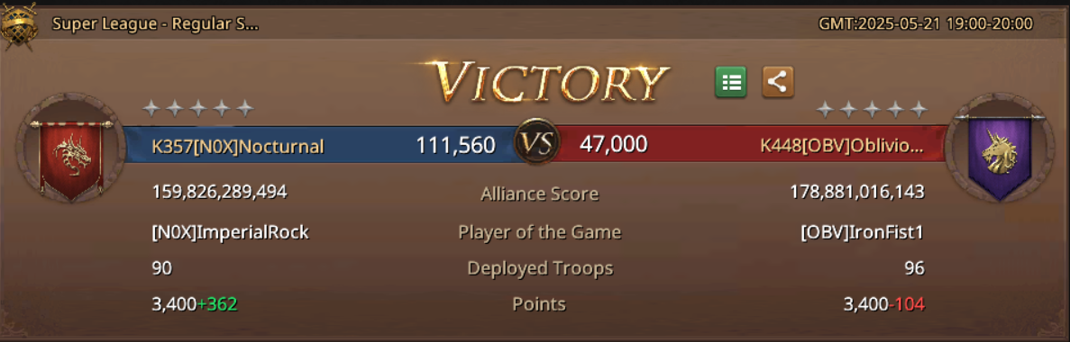 Very good start of the season for [N0X], managing to defeat a stronger alliance and getting a great morale boost for the upcoming fights. Will they be able to keep the pace going or they'll fight alliances that will push them back? See you all on the battlefield!