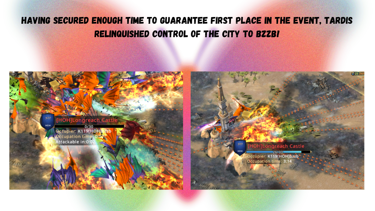 Just as a second rally was about to launch, a sudden twist occurred—bzzb, another member of HOH, took over the city's command. This new target was untouchable for queen, a strategic move by HOH to minimize their allies’ losses.