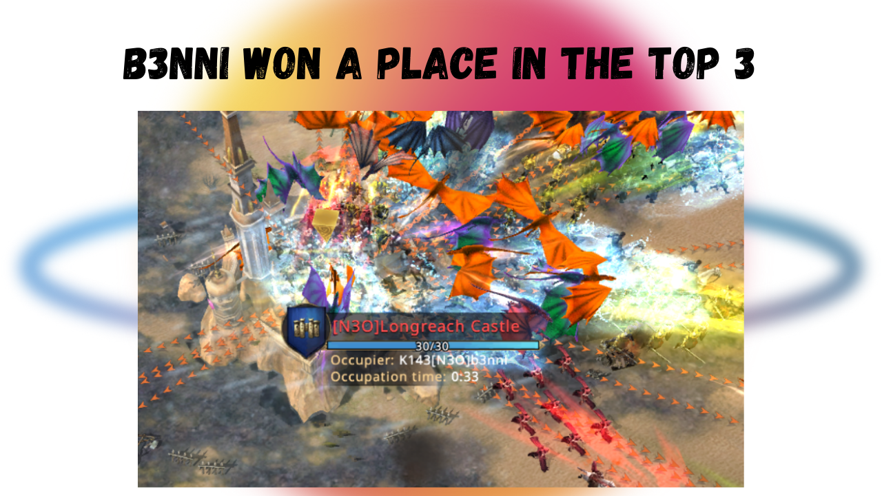 From that moment on, possession of the city changed hands repeatedly among the remaining alliances on the battlefield. b3nni and N30 had enough allies to reinforce its walls effectively and withstand the sieges until the natural conclusion of the 60-minute battle.