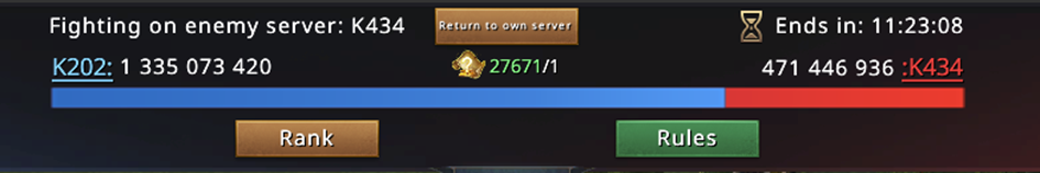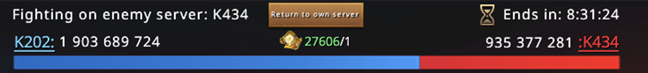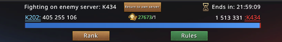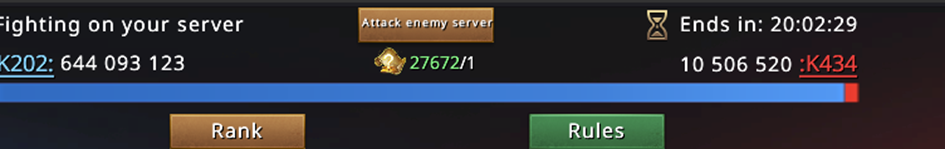 3...2...1... 00:30 passes and we start the game. A quick jump to the opponent's server, checking potential targets and... silence. Everyone is under the bubble, no one is taking orders, no one is active. A complete disappointment. In that case, we take the castles on both servers and see what happens.