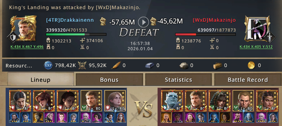 When everyone was available, we decided to take on Makazinjo’s because it was the only challenge for us. Using my account, we prepared a counterattack on the Kings Landing opponent. The settings weren't optimal, but KvK is fun and there's nothing to lose.