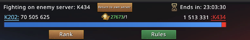 Zero hour strikes. Our enemy this time is server K434. I always prefer newer servers because they are usually more active, although there are newer servers with very old alliances. We get RLS (SaintLegion), which I know nothing about.