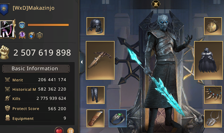 It looks like some new alliance with players from Russia. Several accounts look strong and have over 1B points. We scan the enemy's world. We look for hidden players. We see a lot of RLS alliance accounts, but they won't be the problem. There is this one, found, which we already know surpasses us all in power. To our relief, only(?) Makazinjo from WxD appears, who immediately sets Night King as his lord. We think it's over, another lost KvK. However, he is alone, we can't find anyone else. There is hope.