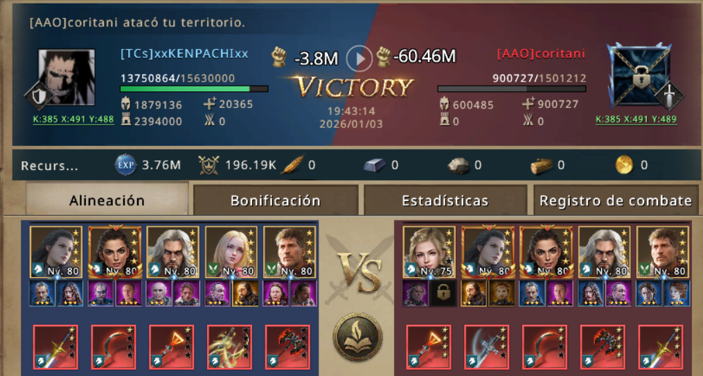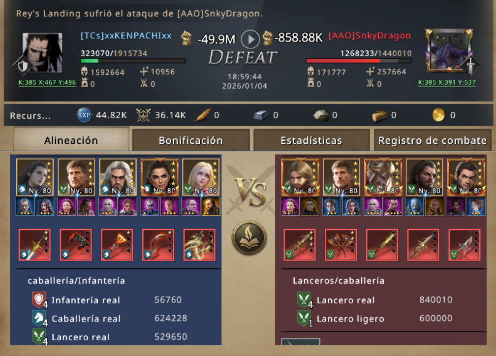 KENPACHI se hizo con su lord, la batalla fue aplastante, 1.5 millones de tropas contra 15 millones, solo pudo golpear y matar unas cuantas t1.