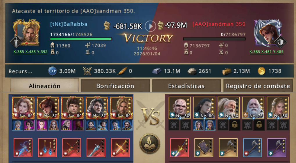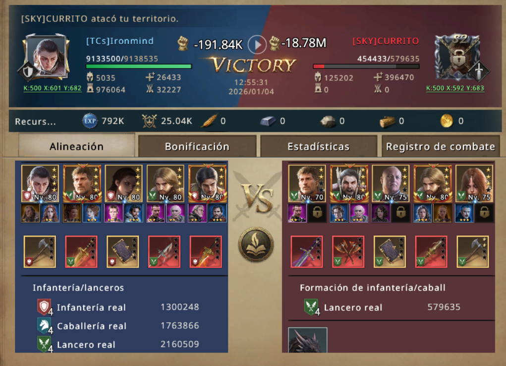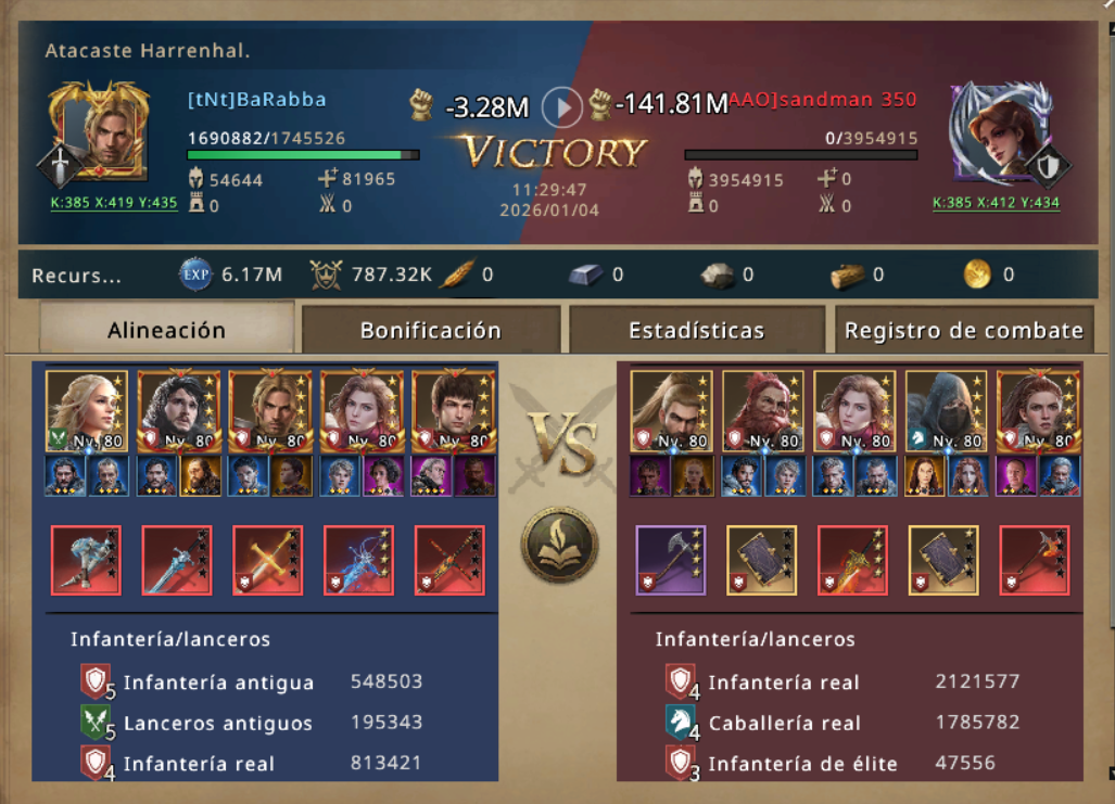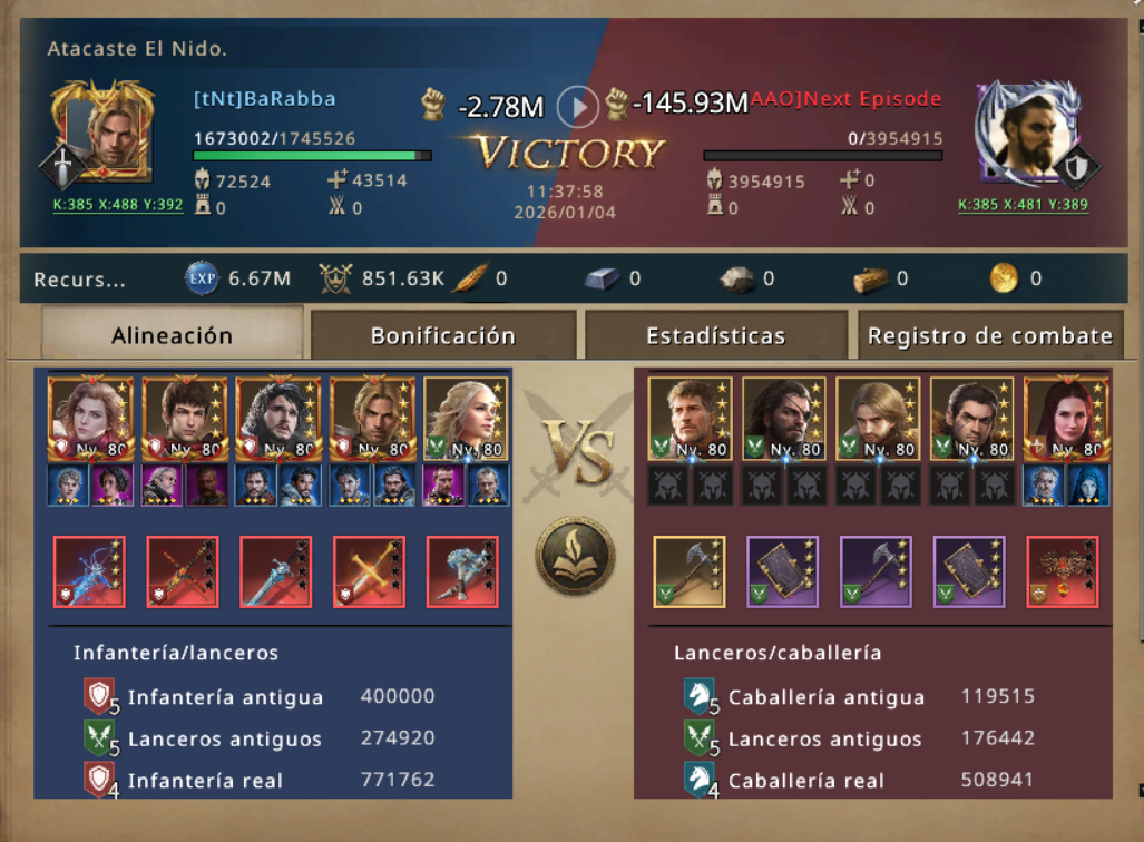 Pero KENPACHI no es un novato, KENPACHI sabe como pelear, anticipo la trampa y en vez de no caer en el cebo puso otro cebo, ataco sin lord, ni main march, saco el tercer dragon a pasear, para que el enemigo creyera que habia lanzado un ataque a full, y en realidad lo estaba esperando con brazos abiertos, Y en efecto tan pronto como su marcha avanzo un enemigo enfilo sus armas en contra de KENPACHI, confiado de su poder debastador arremetio. Pero no le salio como previo jajaja...