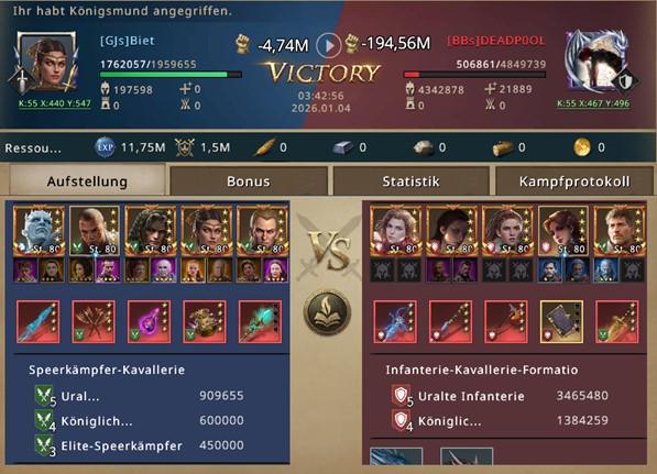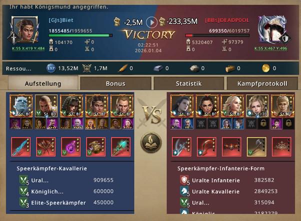 Although the KvK didn't offer a blessing that would bring back lost troops, Biet decided to take the risk and landed a heavy blow on SBC, which brought us level in the rankings.