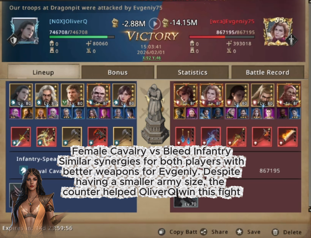 As the winter is still swinging full force in Westeros, [N0X]OliverQ is preparing to embark in a new Arena of Honor adventure. After the first 2 rounds didn't really go his way, only managing to get a 2nd and a 3rd place, he's eagerly looking for the first win of the season to actually start climbing the glory rankings. Within the 2 weeks between the rounds, without any chance to unlocking the valyrian steel weapon upgrades, he concentrated on upgrading commanders and after countless quests and events and spending most of his wealth, he managed to fully upgrade Laena Waters and get her into his main lineup.