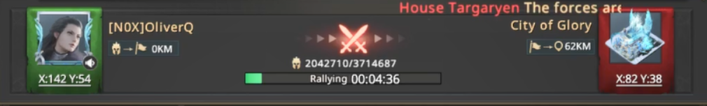 As soon as the bubble dropped, some of the warriors on the battlefield tried to go with solo attacks, but the neutral NPCs ain't a force to mess with in lower stake maps so all the solos ended up in crushing defeats. Seeing that, the houses decided to change strategies and send their best warriors to organize rallies insted. Cersei choose OliverQ to rally in the name of Lannister's and he quickly started the rally and waited for reinforcements.