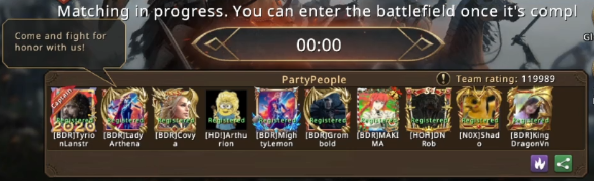 After a not as well as expected start of the season for [N0X] Shado and the team, with a 2nd place in the first round and a 3rd place in the 2nd round of Arena of Honor's Season 5, it's more or less mandatory for them to get a win in the third round if they want to maintain any chance of getting to the Glory King rank. With that in mind, everyone prepared as good as they possibly could and new strategies were made in the 2 weeks between the rounds, to make sure they won't encounter any technical difficulties like they did in the 2nd round. With everything set and done, it was time for them to move towards Arena of Honor battlefield as it was already Sunday late evening and the time for them to register for another round. Once everyone was there, the team got registered and they waited for the matchmaking to be concluded by the Old Gods.