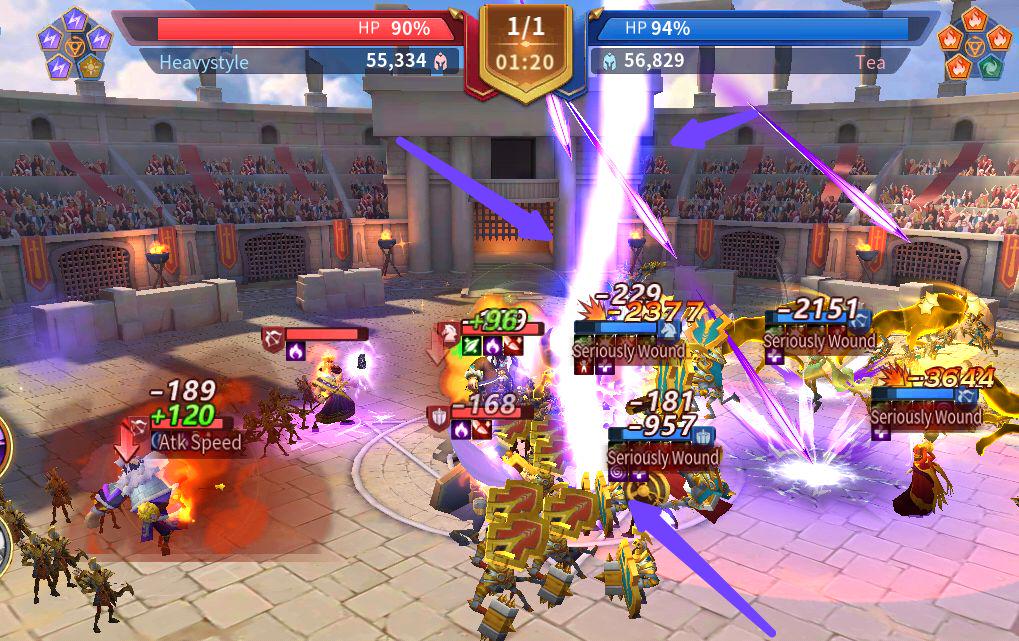 🔎When Richard emits lightning ⚡ (as in the picture with arrows) then the debuff status in the form of stun will appear to several Immortals. This becomes very good if the stun hits Alexander the Great who is an Immortal with an Earth element type or other Immortal Damage Burst. With this skill, the Immortal target cannot move or provide skills.