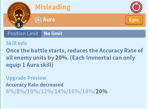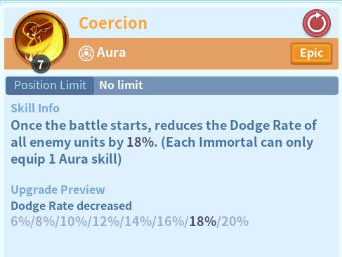 Aura itself has two recommendations from me, namely Coercion or Misleading. Coercion is good for avoiding dodge, so attacks launched by allied Immortals can penetrate the opponent's Immortal without missing⚔️. While Misleading is good for reducing the success rate of Immortal's opponent to penetrate damage to Immortal allies🌬️.