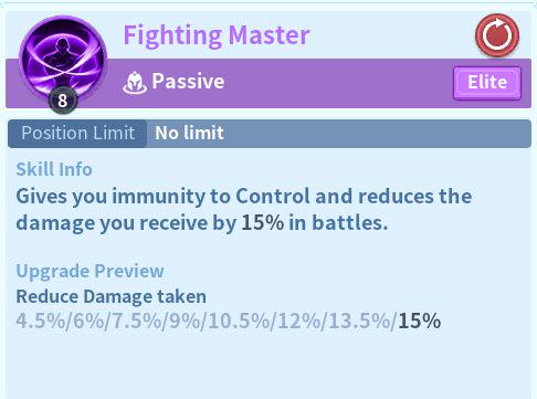 Fighting Master also functions as a damage reducer besides that, this skill is also good for protecting Richard so that Richard can issue more Heaven's Wrath ⚡ skills without being disturbed by debuffs from the crowd controller. At level 8 this skill is able to reduce up to 15% and is very suitable when combined with Assist🛡️.