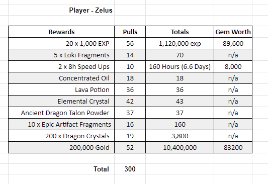 Beside for aiming Loki as rewards, here is the full data based on Zelus's Activity which has been shared to me and he said it is can be shared to everyone.