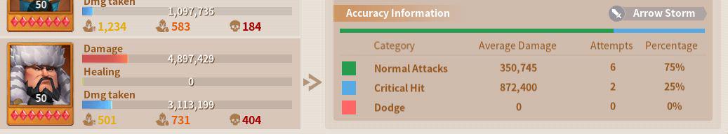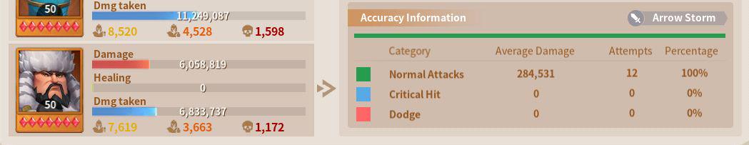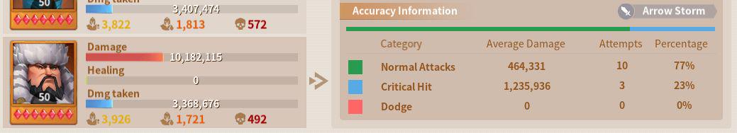 If we look at the average Genghis Khan getting a critical hit is in the range of 0 - 25% based on the evidence above during PvP battle. Then the Iron Fist attribute skill is highly recommended for PvP battle (Arena, Throne of Supreme, Norheim, Frostborne, etc). It is because Iron Fist does not require Critical, without a critical hit the damage will also increase.