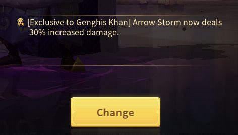 If we look at the maximum value on Genghis Khan's skills, it is 440%. If added using an Exclusive Artifact called The Great Code of Genghis Khan, the damage will increase by 30%, meaning it becomes 470%.