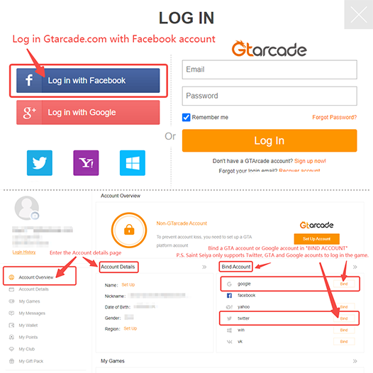 P.S. Saint Seiya only supports Twitter, Gtarcade and Google account to log into the game.