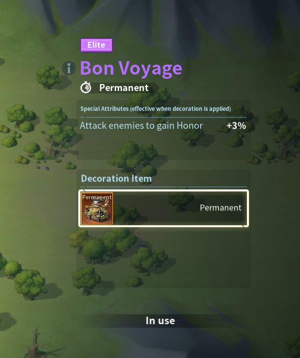 In this article, it can be concluded that the use of Bon Voyage is proven to be able to increase Honor's income when conducting PVP battles in Norheim, Legion of Frostborne, and Illusion Battlefield. Hopefully this article can help all of your curiosity. Let's get Bon Voyage at the Merit Shop (Golden Path) for a much cheaper price of 750 coins!