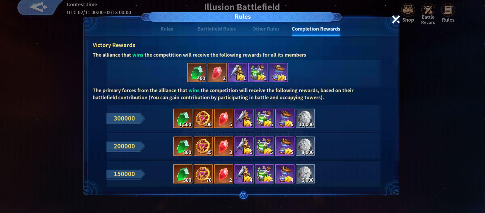 Illusion Battlefield is divided into two, namely, Prime League and Regular. Both of them can get Gems for free, but the amount you get in the Prime League is certainly bigger because this is an Alliance competition event.