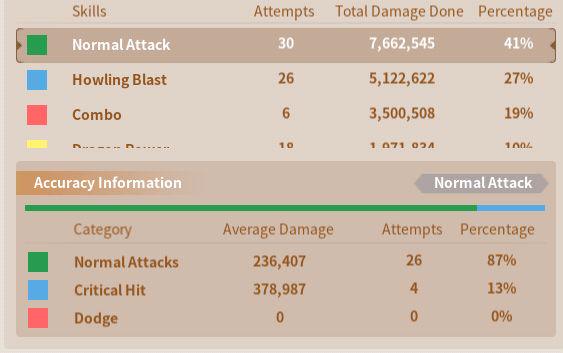 After changing the talent, it was found that the damage received was lower than before (top picture at point 8) while (bottom picture) shows that there was an attack that missed so that the resulting damage was less.