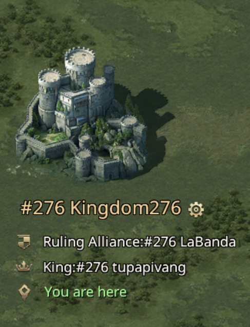 Here we have my current home, 276. We are a fully open kingdom. If you got the relocation scrolls you can move here... However, it is not quite that simple. Each server will have its own rules. Some rules come from the King of the Server and others will be from the Duke of your alliance. The King is the top dog and will generally be a very powerful player. Our King is Vangark. He is a very strong and an excellent strategist. He is very generous and allows my Alliance all of the Great Castles, except for Kings Landing. He is fair will his rules, but will not hesitate to burn those who do not listen and has kicked entire alliances from the server. He actually conquered our server before I moved there lol. There are some who still harbor some feelings about our cooperation with the King. My alliance, UnC works with the King during server events like KVK or Night King. We have a strong and friendly relationship.
