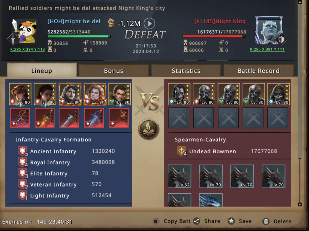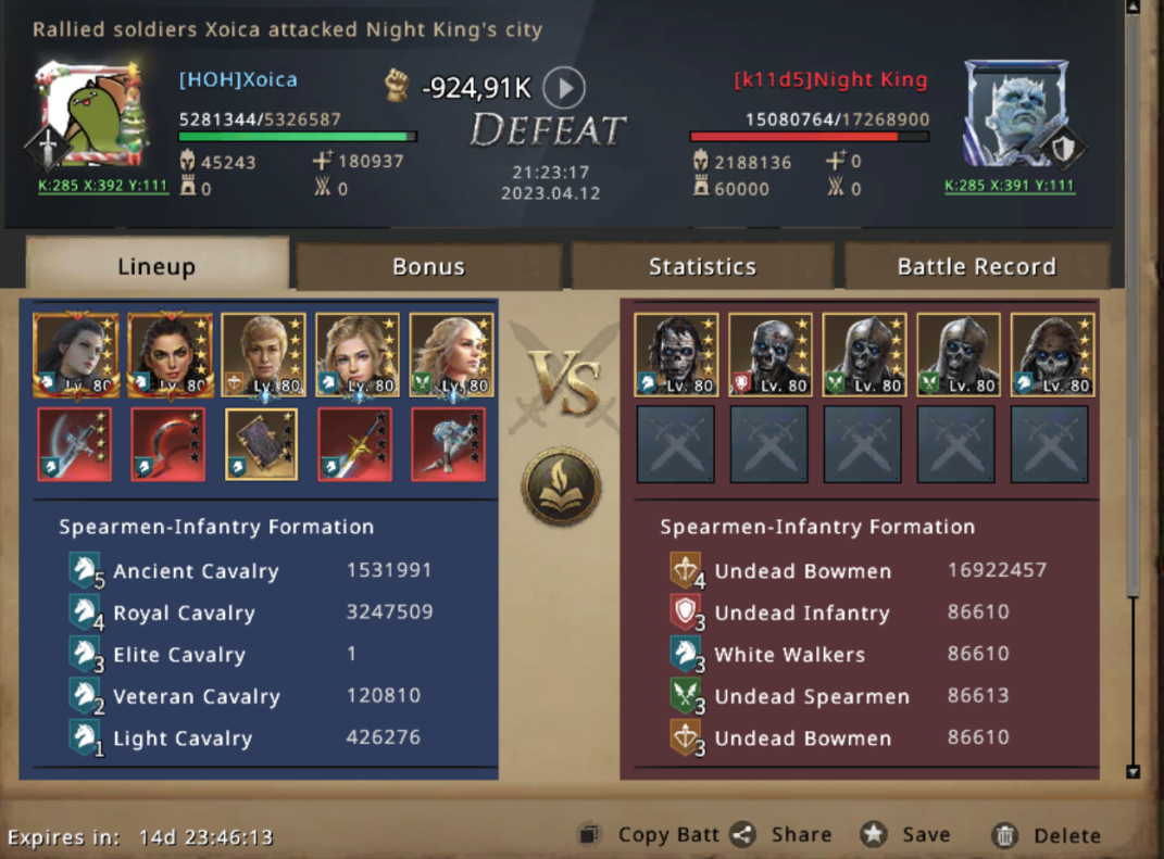 The Battles where violent and there where a lot of battles, with big ammount of casualties on both sides. However, inspired by the bravery and sacrifice of the fallen soldiers of all HOH comrades, the members of Kingdom 285 fought with courage and determination. They pressed on mercilessly, knocking the Night King back with each strike.