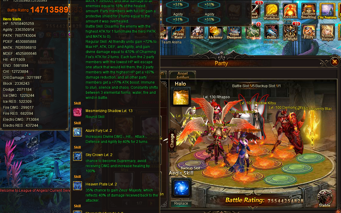 This is a battle from Final Stand War (this dev calculation occurs in every event), in the battle log Shadow Kitsune is clearly disarmed, the fox has 7,626,596,810 MATK in party formation, MC has 8,641,300,397. So MC has over 1 billion more PATK in party formation.