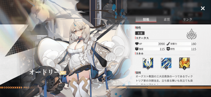 オードリーはパッシブスキルにより戦闘開始時からスキルを使える。さらに、通常攻撃で沈黙を付与して敵のスキルを封じることも可能だ。トップクラスに強力な大当たりキャラのため、オードリー未所持なら引くべき。