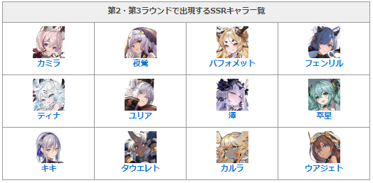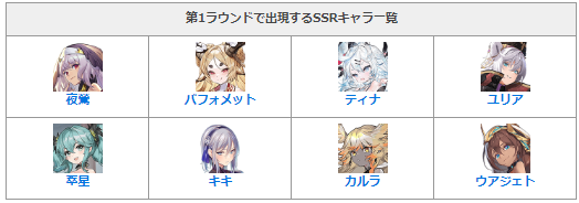 - 各ラウンドで出現するSSRキャラ一覧