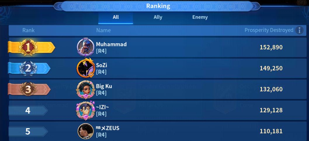 The definition of the Prosperity Destroyed will be discussed in this section. Prosperity Destroyed is the second condition that determines victory for a reason: you need powerful marches to take out other Castle Lords in order to grab the Towers that the adversary owns. [EG] Muhammad from server 121 is the best player for this variable in this match between SKYM vs. EG was demonstrated.