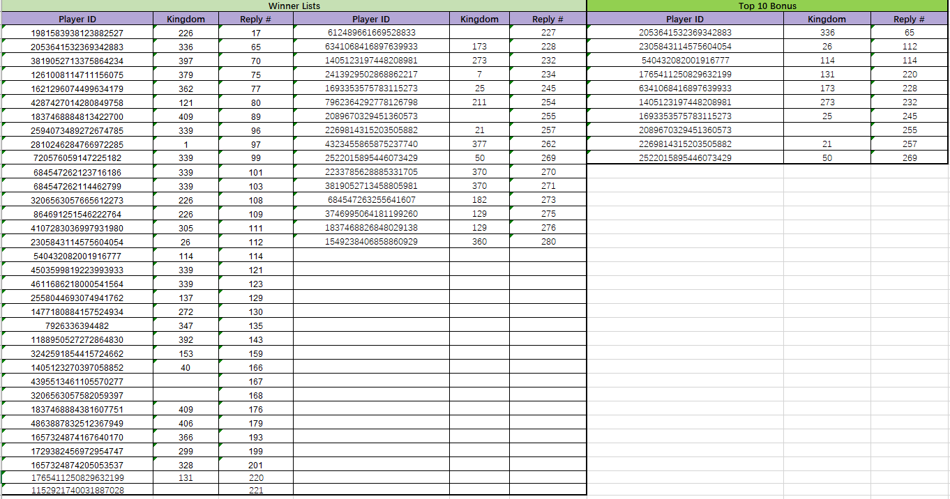 😜Rewards have been sent via in-game mail to the winners listed below. Please don't forget to check them out!