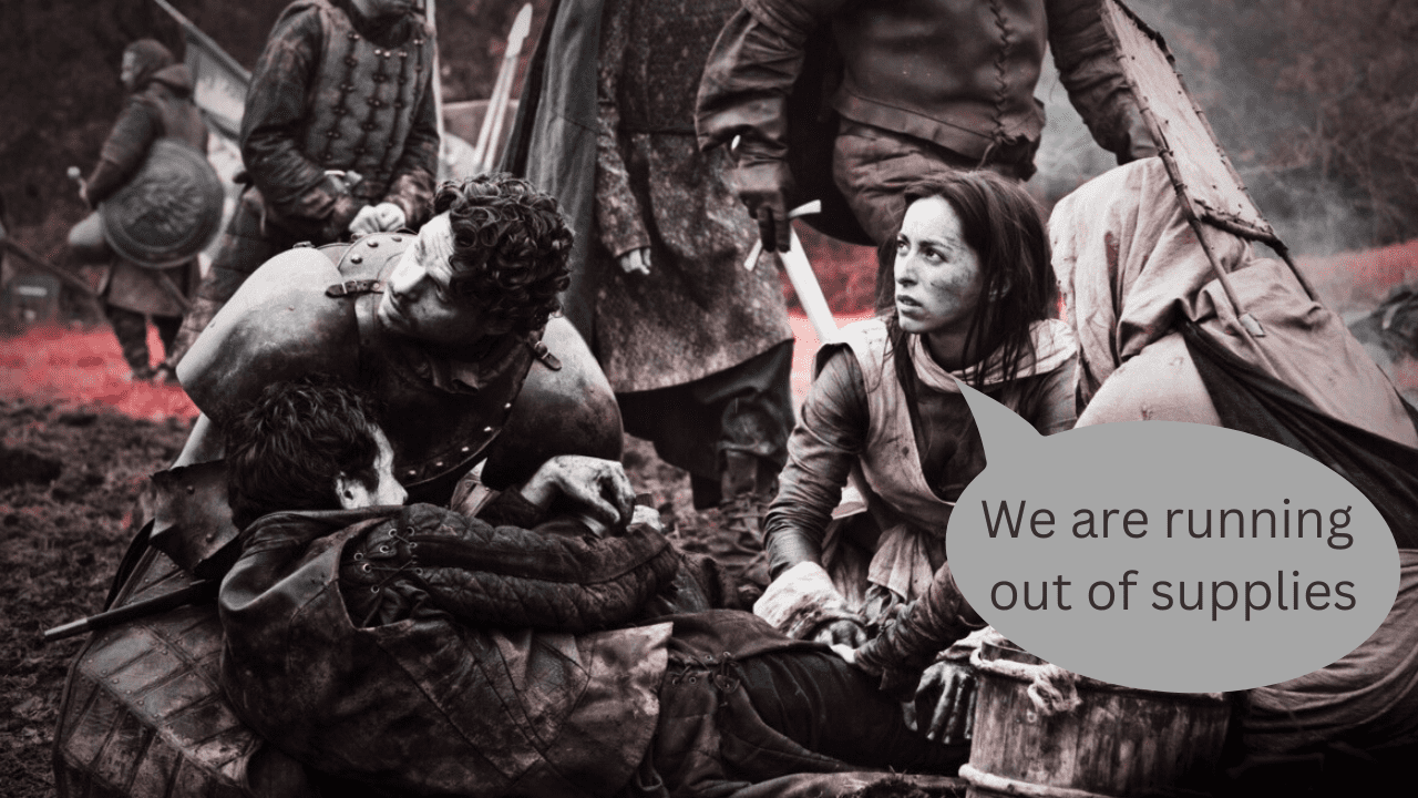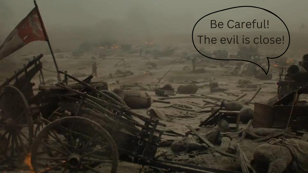 Again we saw an eerie glow in the distance. This mix of red and purple, with spooky shadows. We stopped again and distributed the last provisions. The maesters would take another look at each soldier and ready them for battle. Then stood Lord The Garden to: "This is the end, one way or the other!"