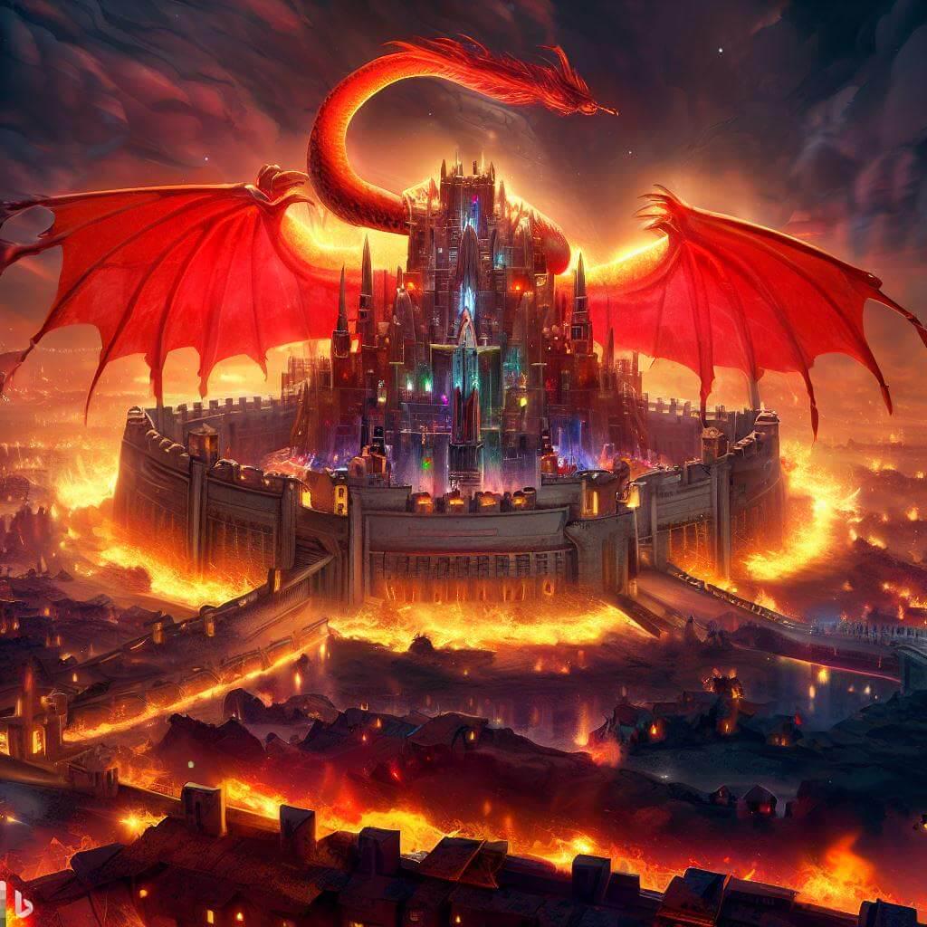 Concept: The Kingdom of Babylon imposes dominance by having the great fire dragon defending the walls of Babylon from any occupier.