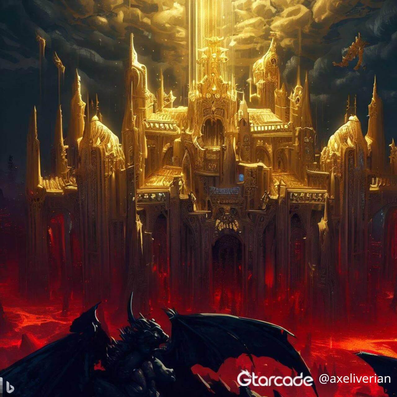 Celestial Castle, angels live here and have a wonderful buildings to create their gold armors and darkness weapons. Blood falls from their gargoyles and the city have demons around