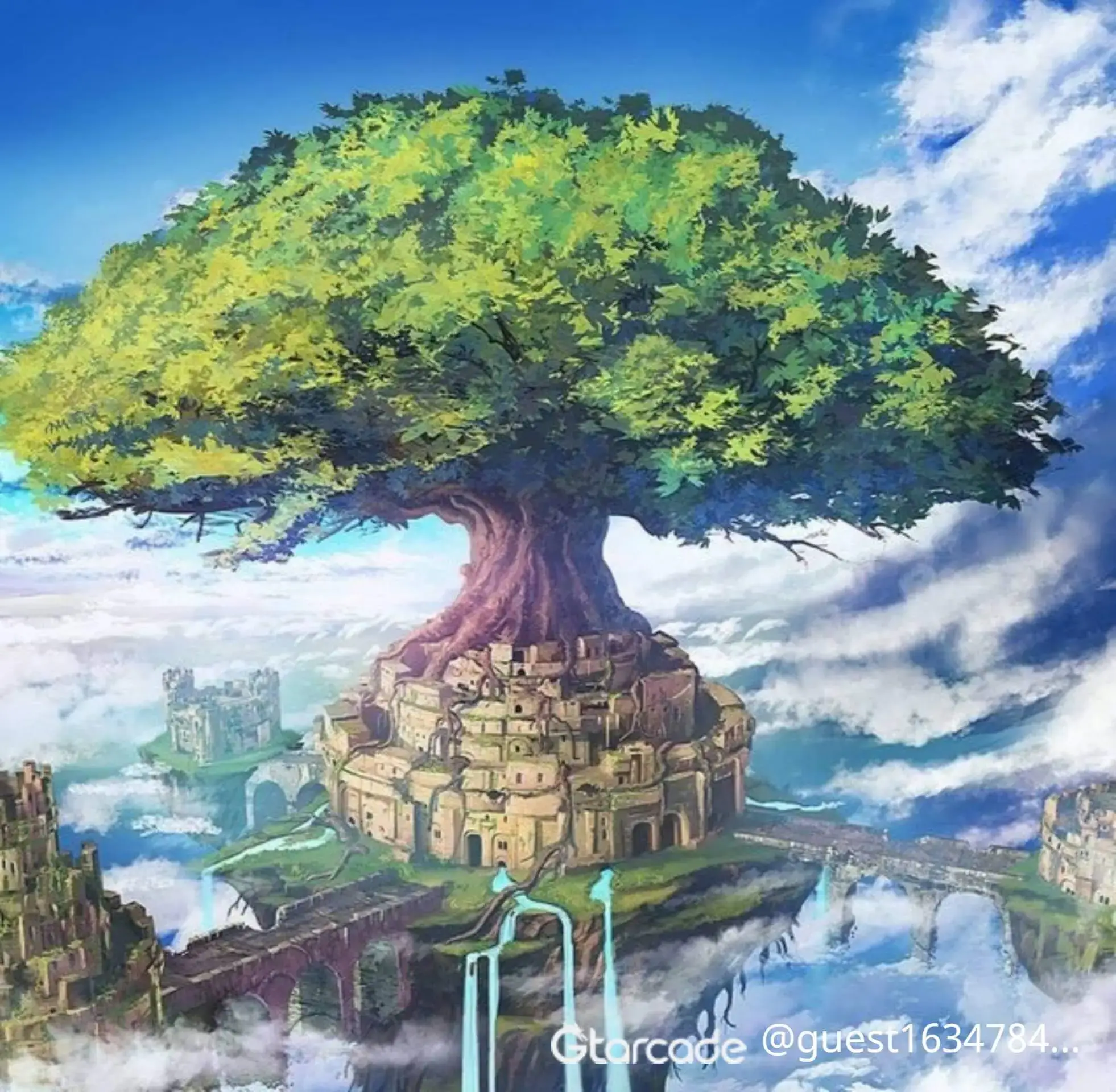 Concept: under the arrival of a new era the sacred tree sat in a castle to bring prosperity and peace