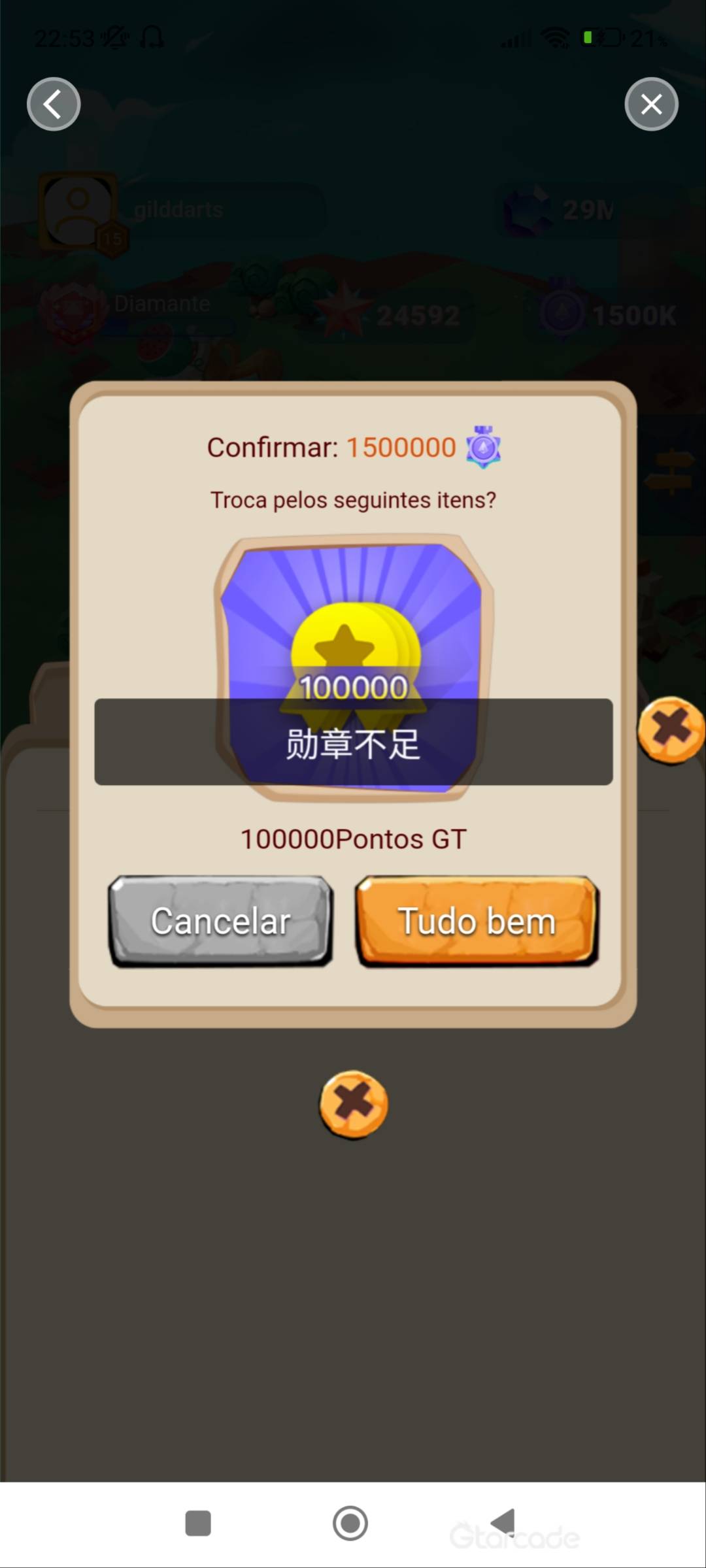 Não consigo comprar os pontos GT com as medalhas do getamon, toda vez que tento fica dando esse erro em chinês. E sim, eu tenho 1.500.000 medalhas.