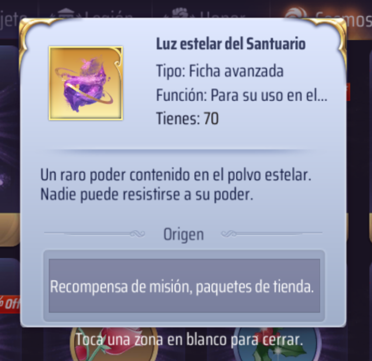 Existe un ítem llamado luz estelar del santuario. Este ítem es muy importante para conseguir cajas doradas así que también te voy a decir dónde puedes encontrarlo.