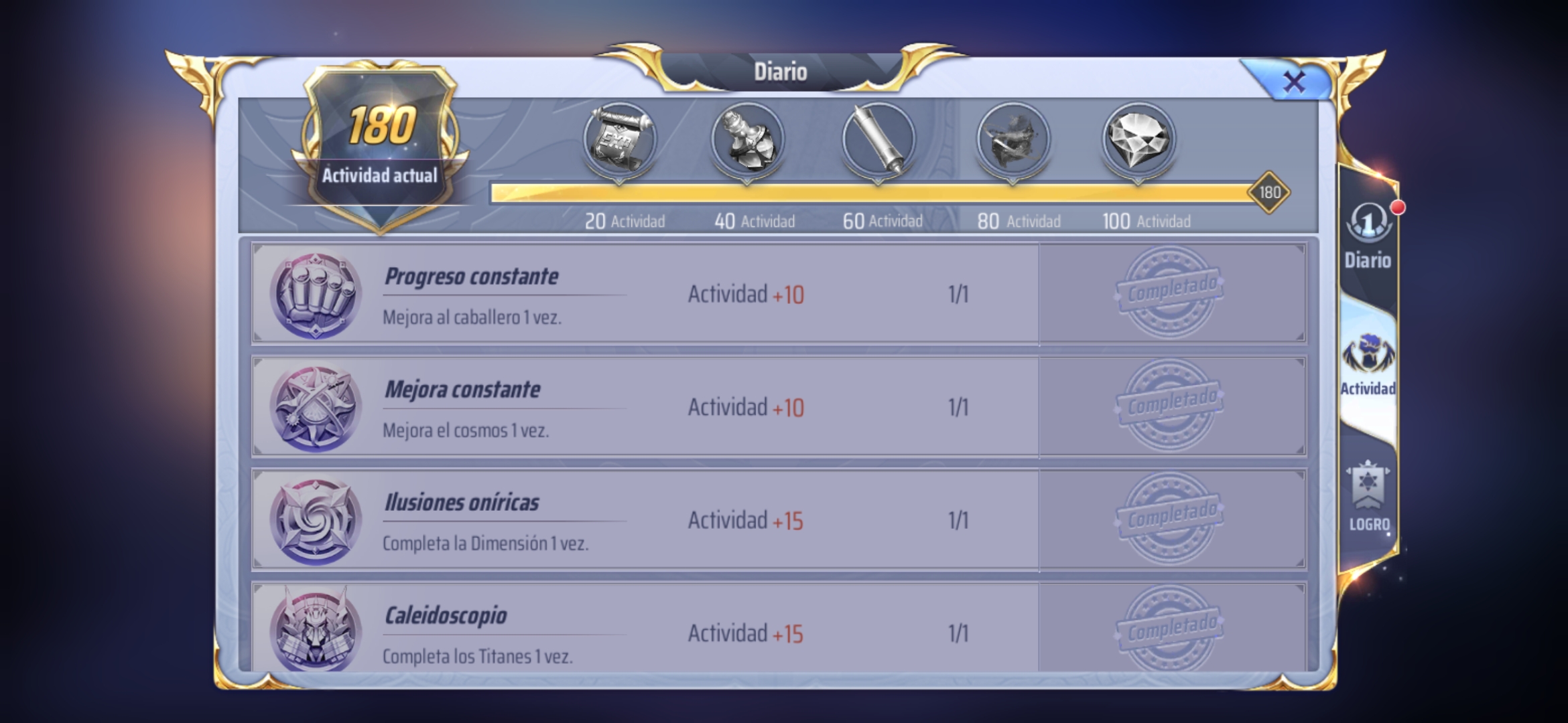 Es muy importante ahorrar y conseguir oricalco e intercambiarlo por oricalco divino, usa el oricalco divino solo para conseguir la última o las últimas dos piezas de armadura que te hagan falta por cada caballero.