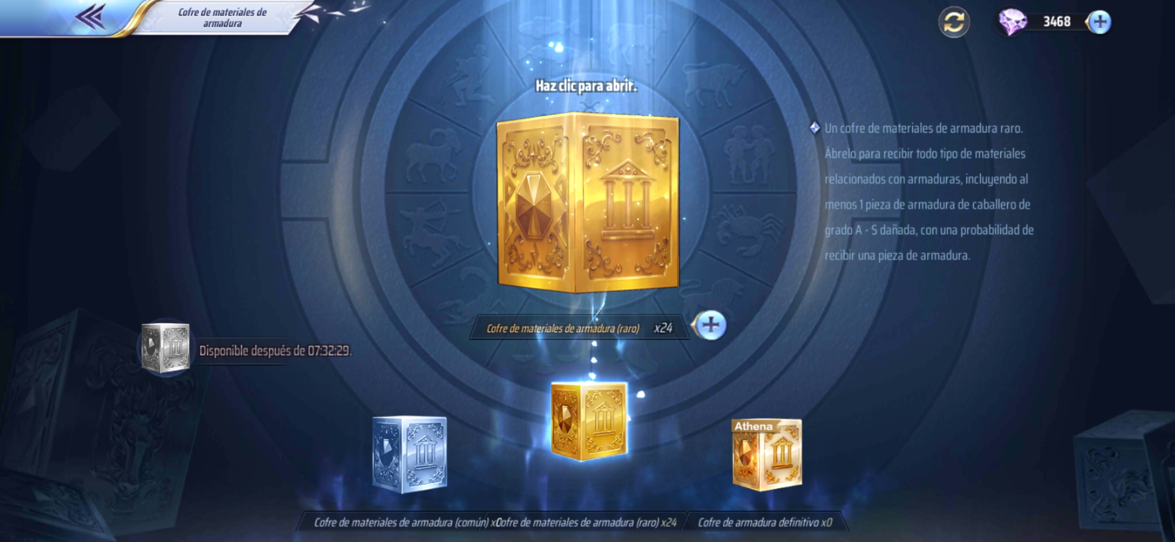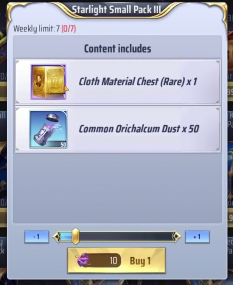 Una vez que hayas conseguido luz estelar suficiente, todos los sábados y domingos aparecerá un paquete especial en la tienda que vale 10 luces estelares, (normalmente la mayoría usa este recurso para comprar el libro azul completo por 250 luces estelares, pero con esta guía no te dará para comprar todo), este paquete te da una caja dorada y un poco de oricalco, y se puede comprar hasta 7 veces por semana o sea, que solo necesitas 70 luces estelares para conseguir 7 cajas doradas a la semana.