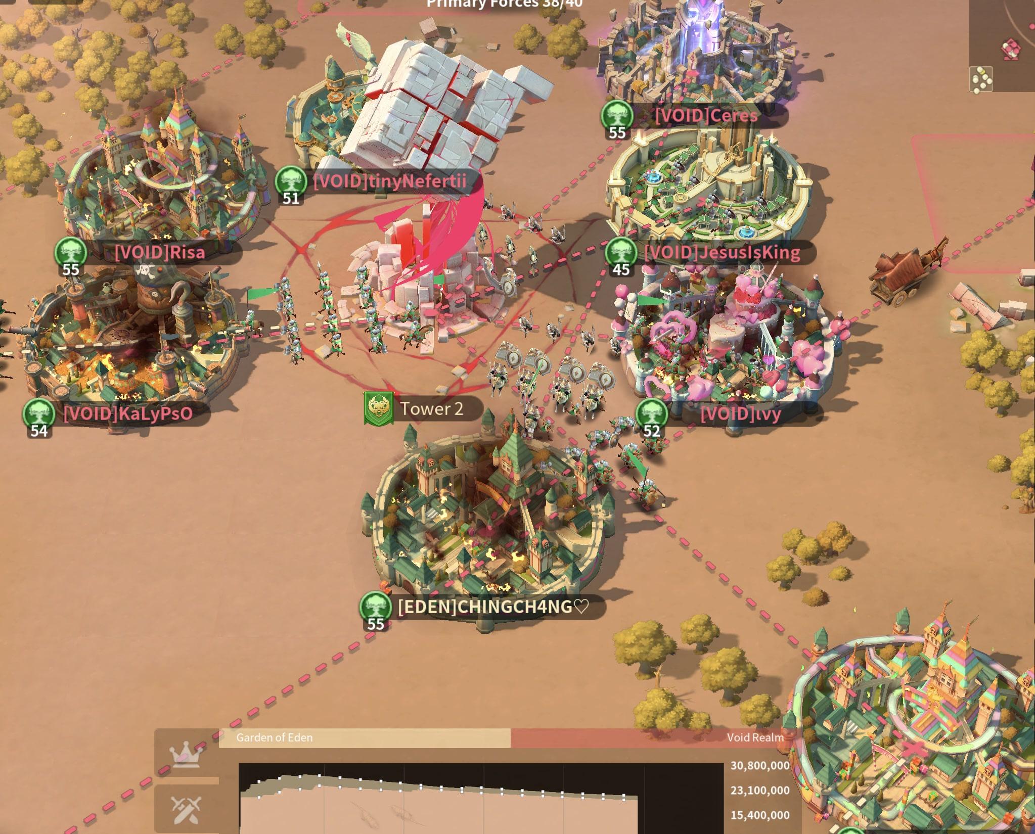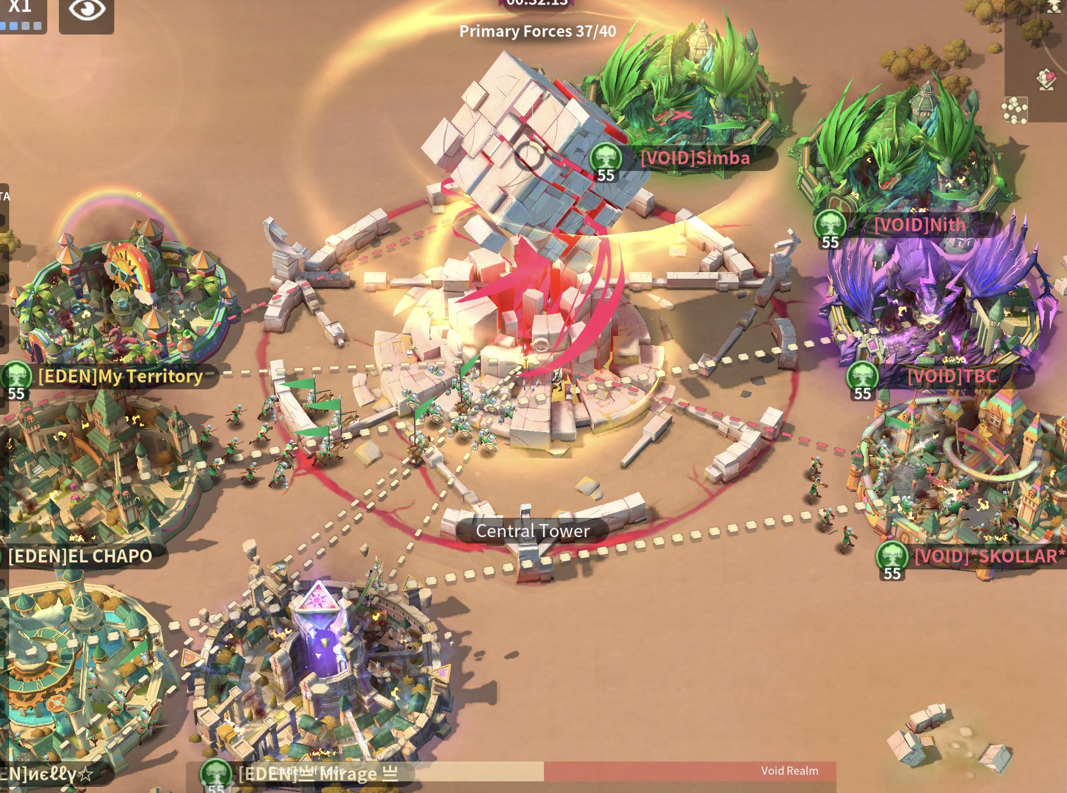 The first great strategy we used in EDEN is to aim for the tower first. We were able to prevent them from taking center tower. One thing we should have improved on is to use quick occupy for central tower. Two players with quick occupy positioned there would have helped alot.
