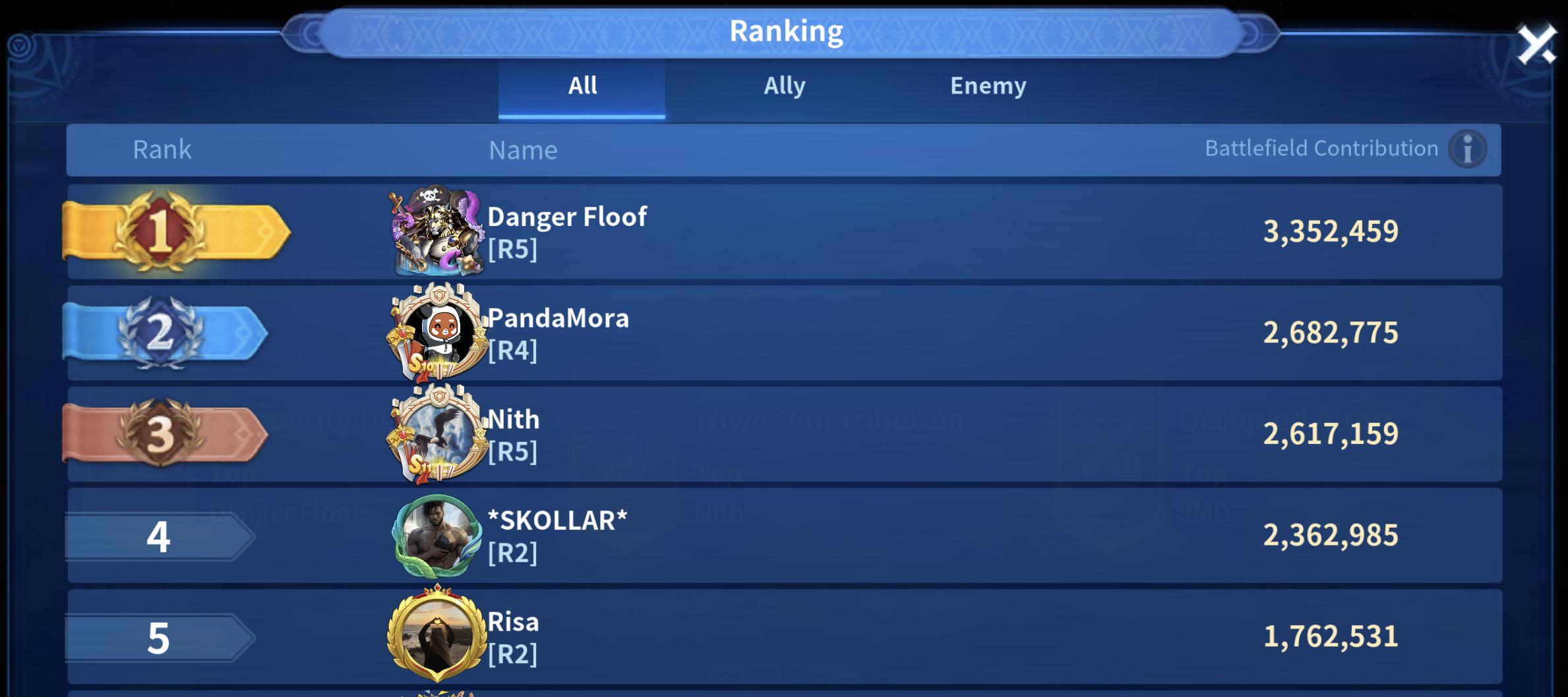 Here’s the contributions. Very high for an IB battle! We don’t see this many players over 2 000 000 score usually.