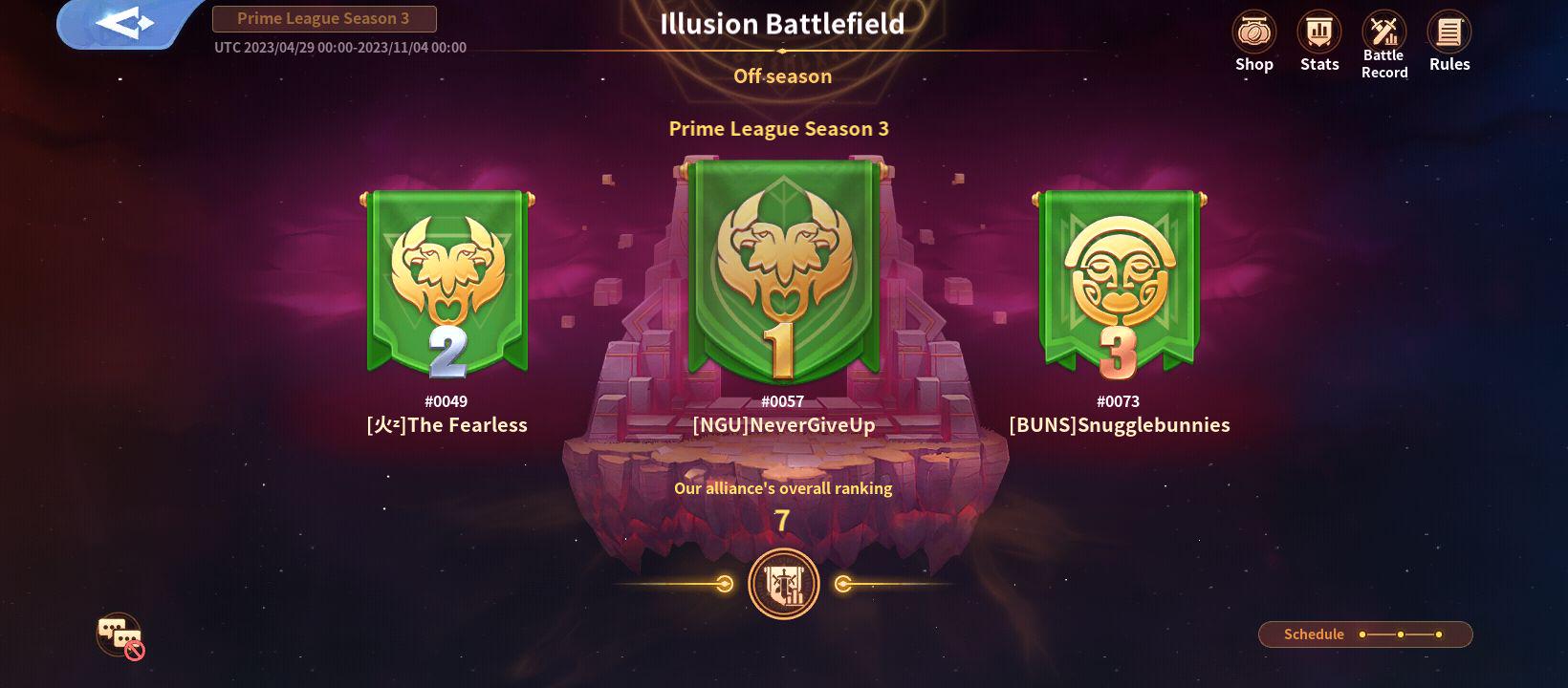 Secondly we will take a look on the top 2 in Illusion Battlefield Prime League Season 3 in the Infinity Kingdom! Let's move forward.