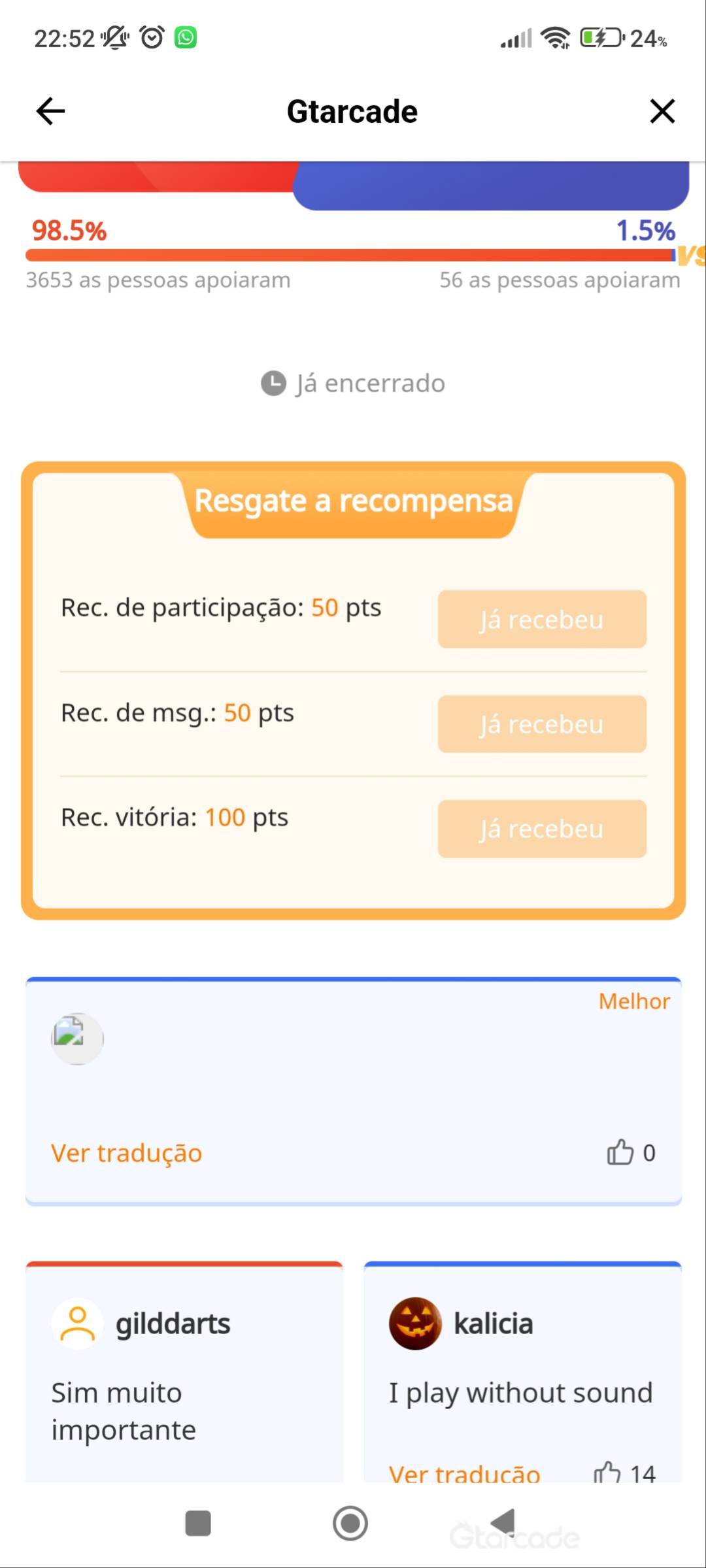 Antes os pontos eram 100/100/50