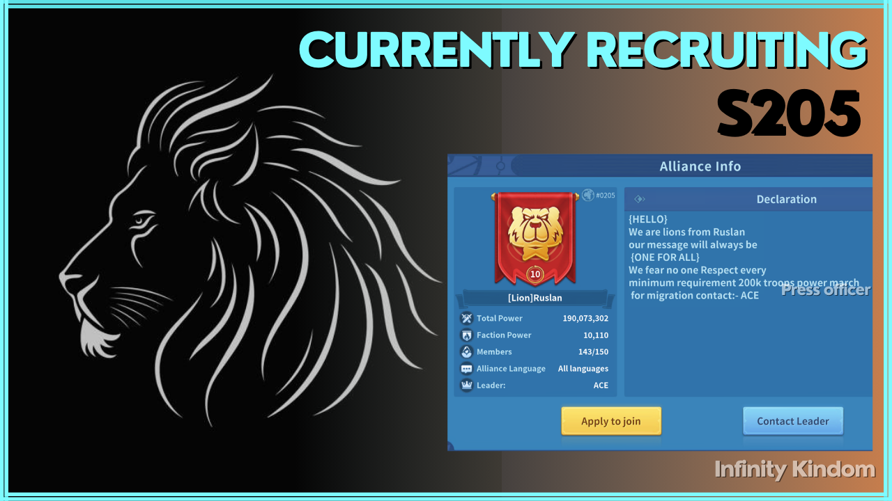 If you would like to join Ace and his amazing team LION from server 205, feel free to reach out to him!