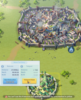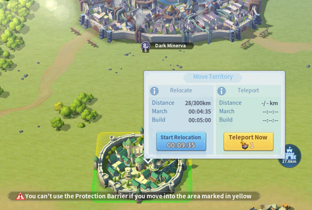 For a lord to be able to use a protection barrier, they must be fully parked in the third row away from the city or capital. This can be identified when the castle has a green highlighted box around the intended relocation site.