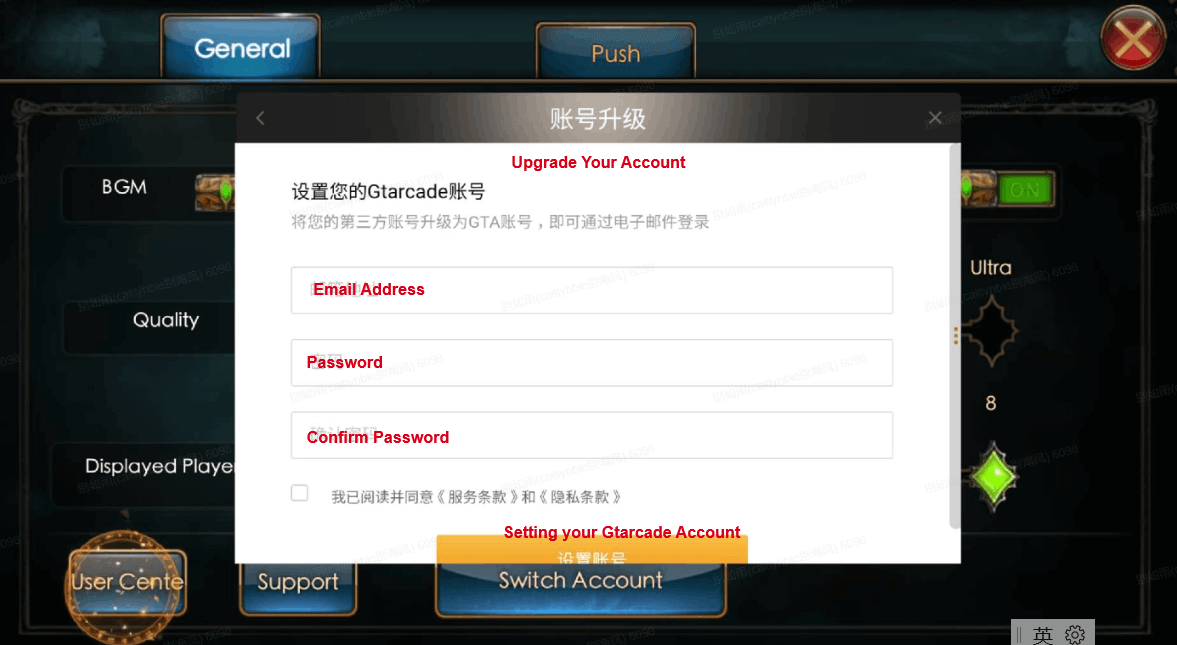 Step 2:If you are signed in as a guest, please make sure to connect your account with Gtarcade in the game(User center-Upgrade your account). If you are Saint Seiya Awakening Players, you can bind your account through Event-Binding Account. Skip this step if you are not using a guest account.